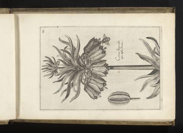 Editor: So, this is Crispijn van de Passe's "Meerkleurige tulpensoort" from 1617. It’s a drawing and engraving using ink. There's something almost scientific about its precise rendering, yet I'm drawn to the flower's complex, swirling petals. What do you see in this piece? Curator: The first thing I notice is the tulpensoort itself: The tulip, especially in 17th-century Holland, wasn’t merely a flower; it was a symbol, an emblem of status, desire, and the volatile nature of wealth. This botanical drawing also includes curious symbols such as the decorative ring supporting the stem, and the bee hovering near the flower's head. Editor: A status symbol? Like a luxury car today? Tell me more. Curator: Exactly. During the Dutch Golden Age, "tulip mania" gripped the nation. Rare bulbs commanded exorbitant prices, a frenzy fueled by speculation and social aspiration. But consider this: why choose a tulip, among all possible flora, to become a shorthand for not only economic status but something deeply ephemeral and beautiful? Do you find any cultural significance to its ephemeral qualities? Editor: The fleeting nature of beauty... and wealth. Like a memento mori? Curator: Precisely. Van de Passe's meticulous detail—every vein on the leaf, the intricate markings of the petals, suggests a desire to capture something precious before it vanishes. Consider also the very controlled hand needed to engrave and publish such prints at scale, when new forms of commerce also depended on printing presses and illustrated broadsides. It all reinforces the tulip as a potent emblem within a specific cultural and economic landscape. Editor: So, it’s more than just a pretty flower; it’s a symbol of a specific moment in history, with echoes that still resonate. Curator: Indeed. This drawing invites us to contemplate the transience of beauty and the sometimes-irrational allure of the rare and valuable. It is interesting to also note that these natural phenomenon of beautifully rendered tulips may not exist anymore, if this rendering survives instead! What will that mean to the world as it moves into the future? Editor: I’ll definitely be thinking about that next time I see a tulip!