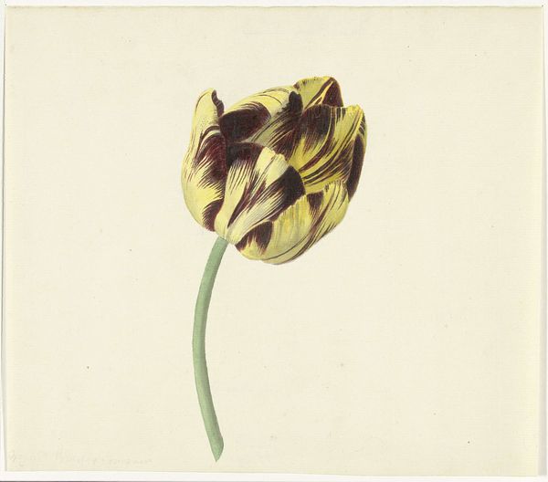 This red and white flower was made by Anna Cornelia Moda using watercolor and pencil on paper. The striking quality of this image resides in the artist's command of the watercolor medium. Note the even distribution of pigment, the controlled, flowing lines, and subtle gradations of color, giving the flower a three-dimensional quality. Consider the historical context of this artwork. During the 18th and 19th centuries, botanical illustration was a blend of scientific observation and aesthetic representation. It was a pursuit taken up by both professional artists and amateurs, especially women, who used their skills in drawing and painting to document and celebrate the natural world. The very act of Moda rendering this flower in such detail reflects the cultural values of her time, a period in which the appreciation and study of nature were deeply intertwined with artistic expression. The result is a delicate, detailed study, a testament to her powers of observation, and her skill in the craft of watercolor painting.