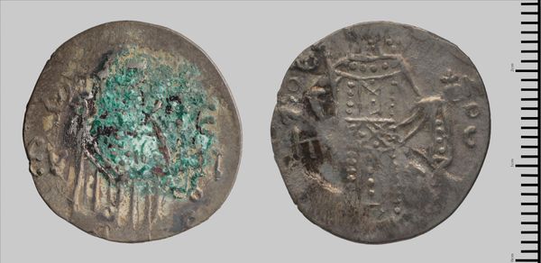 Editor: This is the Asper of Manuel I of Trebizond, a small, worn coin currently held at the Harvard Art Museums. The images are hard to make out, but it appears to depict figures. What can you tell me about its materiality and context? Curator: Look closely at the striking of the coin: the material, the wear, and the imperfections are not flaws but rather records of its journey through economic systems and social exchanges. How do these tangible qualities affect your understanding of its historical significance? Editor: It makes me think about all the hands it passed through, and how the figures might have been perceived then versus now. Curator: Precisely! The coin isn't just currency; it's a material embodiment of power, trade, and even artistic skill within a specific historical framework. Editor: That's a totally different way of looking at it. Thanks! Curator: My pleasure. It's a privilege to consider how the means of production and the economics affect the art.