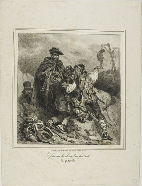 William Nelson Gardiner created this print, "January," around the late 18th or early 19th century. The artwork, rendered in delicate lines and muted colors, captures a winter scene enclosed within an oval frame, immediately drawing our eyes to its contrasting elements. The composition is divided into two distinct spaces. On the left, we see skaters on a frozen pond, rendered with quick, light strokes that convey movement and a sense of the frigid air. To the right, a group of figures huddle together. Gardiner's focus on texture and the layering of clothing emphasizes the material richness and social status of the well-to-do, contrasting with the implied labor and starkness of the winter landscape behind them. The figures, adorned in furs and elaborate hats, are arranged to highlight a sense of both inclusion and exclusion. The print invites us to consider the broader societal structures at play. Are we looking at a commentary on class, a celebration of leisure, or perhaps something more ambiguous? The image's formal qualities encourage a deeper interrogation of its cultural and philosophical underpinnings.
