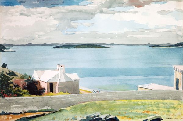 Editor: This watercolor piece is titled "Galilee, looking from near the mouth of the Jordan towards the Mount of Beatitudes and Tabor" by Elizabeth Thompson. The light in this artwork really stands out. What do you see in this piece, considering its historical and cultural context? Curator: It’s interesting to view this watercolor as a cultural document, particularly considering Thompson's position as a woman artist often painting military scenes. How might this more pastoral scene intersect or diverge from societal expectations placed on women artists of the time? Think about how landscape paintings of this period frequently served to validate ownership and power. This image of Galilee could participate in similar discourses tied to colonial or religious ambition, using beauty to normalize a particular political agenda in that geographical region. Editor: That's fascinating, I hadn't considered it in light of Thompson's other works. Does the choice of watercolor as a medium add another layer? Curator: Absolutely. Watercolor, often associated with plein-air painting and thus immediate and direct representation, was increasingly used for scientific and survey purposes during this time. The ‘accuracy’ implied by the medium can also lend a certain ‘truthfulness’ to the depicted space. So, how might this blend of artistic vision and scientific observation function to establish, or perhaps even question, claims to that space? Editor: That's given me so much to think about regarding landscape painting as more than just pretty scenery. I now see it as a potential expression of power and influence. Curator: Precisely. And it underscores how artistic choices, especially regarding seemingly "neutral" genres like landscapes, frequently intertwine with broader socio-political narratives. Analyzing it from this perspective makes us question the relationship between the artist, their art, and its cultural impact.
