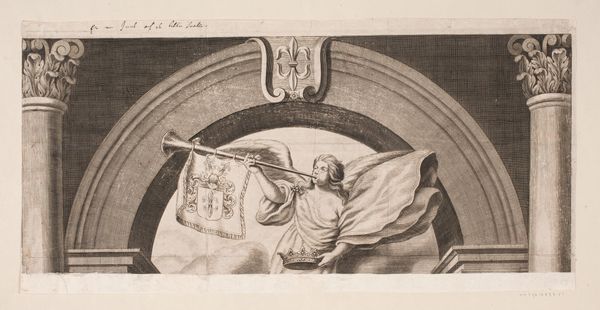 Curator: Welcome. We’re looking at an engraving from 1696-1697. It’s a Vestingplattegrond van Duinkerken, or a fortified plan of Dunkirk. The author is anonymous. Editor: My first impression is the rigidity of the fortifications contrasted with the baroque ornamentation framing the print. The almost obsessive detail…it gives a sense of immense control and, honestly, a little coldness. Curator: That tension is precisely the point. These plans were tools of power, displaying a mastery over terrain and defense. The anonymous production raises questions about artistic license versus military objective. Editor: The etching technique itself enforces the control – such clear, decisive lines. The very materiality of the engraving on paper supports that reading, doesn’t it? Curator: Exactly. But look closer at that ornamentation you mentioned. Cherubs pulling back the curtain as if revealing some great secret…it's propagandistic. Dunkirk was a significant port, a strategic asset fought over for centuries. Consider the social and economic implications of its control. The print wasn't just cartography. Editor: And that curtain itself, draped so carefully. It’s theatrics! The composition deliberately draws the eye to the meticulously rendered town plan, almost celebrating the potential for its dominance. Curator: Absolutely. It also invites contemplation of Dutch power, of mercantile ambition cloaked in scientific precision, intended for both informative and aspirational purposes, to reinforce social norms. The act of printing, the mass dissemination, served this very end. Editor: And the frame further enhances that idea. What seems like a decorative border really amplifies that sense of importance. The work becomes like a jewel on the wall. I suppose the whole print does project a particular ideological perspective… Curator: Indeed. What at first may strike us as objective observation in this city scape becomes imbued with an anonymous ambition tied to war. Editor: Reflecting on it, it does serve as more than a historical artifact; its formalism betrays strategic ambition and the exercise of power. Curator: Precisely. Its enduring testament lies not merely in geography but in humanity’s insatiable craving to create boundaries, real and imagined.