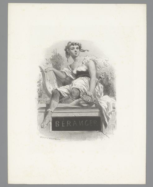 Curator: What an intriguing find! This is "Amor bij vrouw achter boerendeur", dating somewhere between 1823 and 1873, created by Célestin Nanteuil, using a humble yet effective tool—the pencil. Editor: Hmm, my first impression is a kind of rustic intimacy, a coy glance exchanged through a weathered doorway. It's tender, yet mischievous. The texture seems really crucial to its charm, a blend of the smooth and the rough. Curator: The romanticism is so clear, isn't it? That embrace of emotion and a touch of the fantastical… Cupid, of course. What I find interesting is the stark contrast Nanteuil creates between the smooth, almost ethereal rendering of the figures and the roughhewn texture of the wooden door. Editor: It almost feels like the doorway itself is a kind of frame within a frame, really pushing us to think about thresholds. Cupid, on the verge of flight, juxtaposed against this very static female figure... It invites questions of agency. Who really holds the bow in this story? Is it Amor? Or is it something within her? Curator: Yes! And think of the composition too – a delicate balance between the solid mass of the doorway, anchoring her in place, and the lightness of the foliage on the right, hinting at a world beyond. Editor: Looking at it now, it does evoke a fleeting moment, something snatched from a story yet untold. It is as if Nanteuil captured that feeling right before desire fully takes hold. It speaks about those tiny hesitations, that second of uncertainty when all becomes desire... the doorway framing both literal and emotional choices. Curator: Exactly! It's those subtle cues – the pensive look, the half-drawn bow – that make it more than just a simple genre scene. This artwork reveals such intricate levels of symbolism with remarkable economy. Editor: It certainly leaves a whisper in its wake, a reminder of the potent narratives etched in simplicity. And for me, I find I’m much more aware of what Cupid is pointing at now and less sure than before that the arrow has anything to do with love.