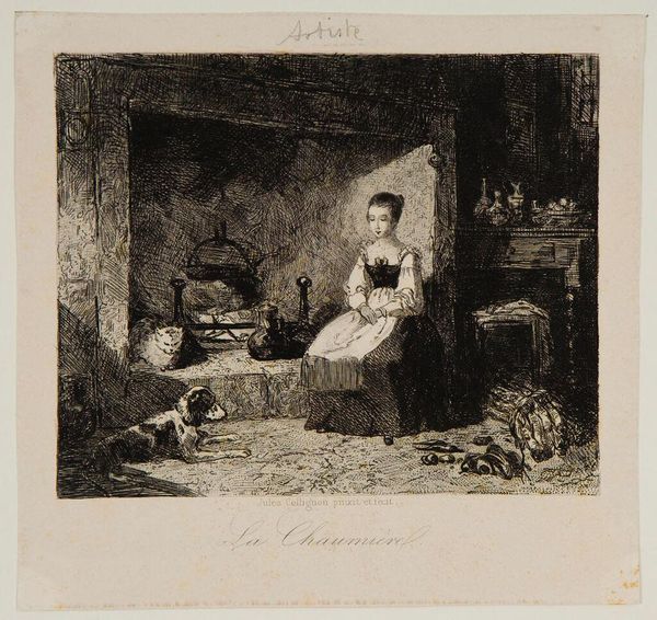 Curator: Here we have "Piper" by Edward Goodall, an evocative piece held at the Harvard Art Museums. The scene depicts a family gathered indoors, listening to an elderly piper. Editor: My first thought? It feels like a snapshot of storytelling itself. The light is gorgeous, all soft focus, like a memory. Curator: Absolutely, and it is important to consider how this domestic portrayal normalizes certain societal expectations. The women are positioned within the home, reinforcing gendered roles, while the piper, presumably a man, brings the outside world in. Editor: But maybe it is about more than just that. Look at the faces, some are captivated, others distracted. Art, like storytelling, affects each of us differently. Curator: A crucial point to consider, indeed. The intersection of art, narrative, and social conditioning shapes our perception of such imagery. Editor: It's like stepping into a half-remembered folk tale, isn't it? The artist captured a moment of shared experience, but with a hint of something deeper lingering beneath the surface.