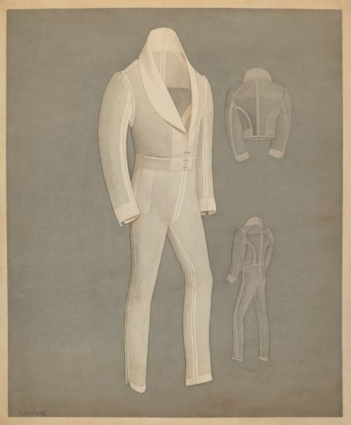 Creighton Kay-Scott made this watercolour called "Coat and Trousers", but we don't know when, exactly. What strikes me is the simplicity and clarity of the lines. It’s as if the artwork is a kind of blueprint, a proposal for something yet to be made. Look closely and you'll see the details in the stitching, the gentle shading that gives shape to the fabric. The texture is almost palpable, and the way the light catches the folds and creases gives the garments a kind of quiet dignity. Notice that the artist has chosen to show not just the front view, but the back and a pair of trousers too, like different stages in the making process. It reminds me a little of Agnes Martin's drawings, in the way that simple, repetitive marks can create something unexpectedly moving. I wonder what other garments Kay-Scott might have designed, and what stories they might tell. In any case, this picture feels like the start of a conversation, an invitation to imagine what could be.