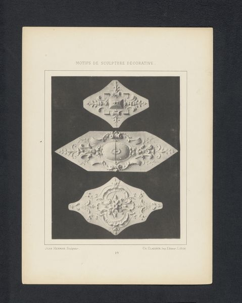 Curator: Here we have a reproduction of four prints showcasing jewelry designs. It's attributed to Hans Collaert, dating back to sometime before 1880. The images themselves appear to originate from the 16th or 17th century. Editor: Intricate! The sheer detail is captivating. I'm immediately drawn to the contrasting weight of the line work and how the shapes manage to feel both opulent and meticulously planned. You can see that making these was really labor intensive. Curator: Precisely. These images offer us a window into the cultural significance of jewelry during the Renaissance. It represents wealth, status, and the evolving aesthetic values of the time. Think about how prints like these circulated - offering access to luxury designs for a growing merchant class. Editor: I'm really curious about who made the designs and how that knowledge was transferred to create physical objects. Like what kind of workshop supported Collaert's original art, or who would ultimately be responsible for shaping the final materials and gems. Did artisans interpret these designs exactly? Or did the production process bring about unforeseen evolutions? Curator: That touches on a vital point. While these prints appear decorative, they really underscore a changing dynamic of artistic patronage, and artistic license. Printmaking democratized access to design ideas, so how did those with power - and money - react and adapt? Editor: It's about consumption then, right? These detailed drawings served almost as catalogs to attract certain people. Now I wonder how it would change design processes to start off with the constraints and possibilities of metal, gemstones and jewelry-making equipment in mind? Instead of presenting an almost idealized image. Curator: Exactly, and to take that idea further, how did those in power attempt to reinforce hierarchies through increasingly complex and visually overwhelming pieces that tested those material limitations, reinforcing class divisions and their right to access these resources? Editor: Well, this has been quite a revealing look, beyond surface value! It’s so cool how these kinds of ornate drawings point toward interesting avenues for deeper critical interrogation of economics, production and status. Curator: Agreed. This particular arrangement shows us that these reproductions speak volumes about artistry, consumerism, class, and design across historical moments.