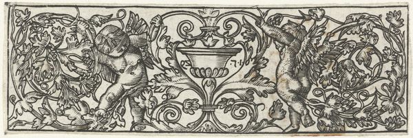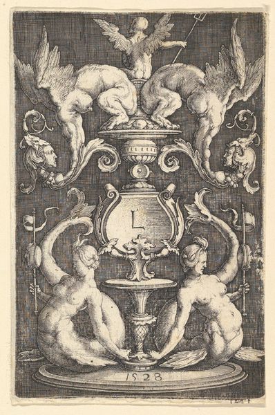 This ornamental panel was made by Jacob Binck in the 16th century using engraving, a printmaking technique on metal. Notice the intricate details that Binck was able to achieve, a testament to his skill as a craftsman. Engraving involves using a tool called a burin to carve lines directly into a metal plate, which is then inked and used to create prints. This method requires precision, control, and a deep understanding of how different pressures and angles affect the final image. The linear quality of the engraving lends itself well to the stylized forms of the figures, vase, and foliage. The print is tiny, yet this belies the amount of time and labor involved in its production. In its original context, this print would likely have served as a template for other artisans: goldsmiths, cabinetmakers, and others. It's a reminder that even seemingly "minor" art forms can play a major role in the broader cultural landscape. They also collapse the distinction between high art and design.