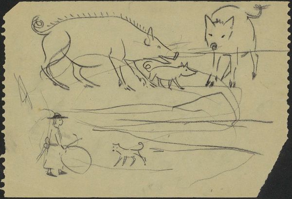 This drawing, "Drie Varkens," was made by Gerrit Willem Dijsselhof, and depicts three pigs sketched in graphite on paper. Dijsselhof's choice of graphite lends a delicate, almost ephemeral quality to the image. The texture of the paper is also intrinsic to the work, giving a soft background for the quick strokes of graphite to come alive. Dijsselhof was deeply engaged with the Arts and Crafts movement, which was against the mass-produced goods of the industrial revolution. With its simplicity, this study can be seen as an embrace of unpretentious materials and mark-making, qualities that were esteemed within the movement. In this context, the choice of such humble materials speaks volumes. The graphite lines and paper aren't trying to be anything other than what they are. By appreciating the honesty of the materials and processes, we can move beyond traditional notions of high art, and instead, appreciate this simple, elegant sketch.