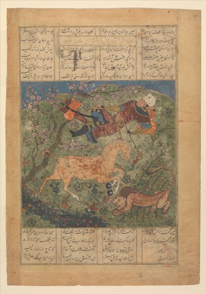 This is "Rustam Captures the Horse Rakhsh," a page from a Shahnama, or Book of Kings, made in Persia around the 16th century. In it, we see the hero Rustam choosing his horse. The Shahnama is an epic poem, composed in Persia in the 10th century. It's full of myths and legends, and it tells the history of Persia from the beginning of time to the Islamic conquest in the 7th century. This image is a product of a long tradition of courtly patronage; illustrated manuscripts like this were highly prized, commissioned by rulers to demonstrate their wealth and power. But they also served to reinforce a sense of Persian identity through their visual storytelling of Persian history and legend. Understanding this work fully requires delving into the social and political context of Persia at the time, exploring the role of the court, and the function of art in shaping cultural identity. A historian might consult manuscript studies, court records, and other visual sources to fully unpack its significance.