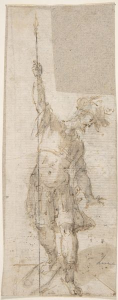 This pen and brown ink drawing of a draped standing figure with outstretched arms is at the Art Institute of Chicago. The figure dominates the composition, its contours defined by delicate lines and its dramatic pose evoking dynamism. The artist uses hatching and cross-hatching to suggest depth, volume and materiality, as seen in the folds of the drapery. The figure's outstretched arms create a visual tension, pulling the viewer's eye upward. The linear style contributes to the emotional impact of the drawing. This work invites us to consider the interplay between form and meaning. The figure is not just a representation but a semiotic carrier of cultural values and narrative possibilities. By analyzing the formal structure of the drawing, we uncover layers of cultural and philosophical meaning. The piece reflects broader artistic and philosophical concerns related to space, representation and perception, as seen in the dramatic visual elements.