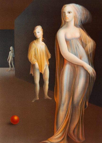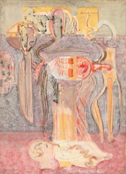 Editor: This untitled oil painting by Vladimir Dimitrov presents three figures in what looks like traditional clothing. There's a certain solemnity, almost a melancholy, that permeates the scene. How do you interpret this work? Curator: It strikes me as a powerful assertion of cultural identity. The figures' traditional attire, coupled with their somber expressions, suggests a deep connection to their heritage. Considering Dimitrov’s background, it invites us to explore questions of nationalism, tradition, and the representation of women within specific cultural contexts. What stories do you think their garments are telling? Editor: I hadn't thought about the garments as narratives themselves! The repeating patterns and muted color palette now seem more deliberate, almost like a coded language about their status or community. Curator: Exactly! The visual language points to shared histories and perhaps even struggles. Expressionism isn’t merely about conveying emotion, but also about using art as a tool for social commentary. Could this be a statement on the role of women in preserving cultural memory? What do their collective gazes suggest to you? Editor: Now that you mention it, their averted gazes and almost identical expressions suggest a shared experience, maybe a burden or a secret that binds them together. It feels less like individual portraits and more like a representation of collective identity. Curator: Precisely. By exploring themes of cultural identity and collective memory through the lens of gender and tradition, Dimitrov's "Untitled" pushes us to consider the intersections of personal experience and broader social narratives. Editor: I'll definitely view portraiture with different eyes from now on! Curator: Excellent! Hopefully, understanding artwork such as this encourages us to look at art as a mirror reflecting our history and society.