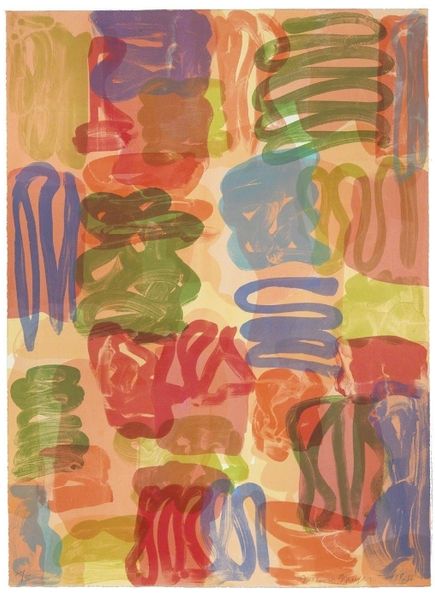 Curator: Oh, this makes my synapses fire. There's such raw, playful energy radiating from it. It’s a delicious visual feast! Editor: Agreed. Let’s orient our listeners. We're looking at "Wait - Untitled XIX" by Piero Dorazio, completed in 1968. It's an acrylic on paper, very much situated within the hard-edge painting movement and color field painting. Curator: "Wait..." perhaps suggesting a pause to simply revel in the color? I love how those fractured geometric shapes interact. Like shards of stained glass after a delightful explosion! Editor: Yes, Dorazio’s interest lies in the relationship between color and form, space, and light. Born in 1927, he came of age post-World War II, engaging in Marxist intellectual circles before fully committing to abstraction. He's challenging traditional representation. Curator: Do you see that intentional "roughness" to the edges of the painted bars? It stops them from being too clinical, gives them personality. Like they've weathered a storm or two. I get a distinct feeling of... optimism from this work. Does that sound absurd? Editor: Not at all. Although his early work displays his socialist values, he soon explored pure abstraction. He wanted viewers to confront questions of perception, much like the Italian Spatialism movement and its own break from the legacy of fascist aesthetics in the 1950s and 60s. Curator: And look at the layering! Areas where the colors subtly bleed through, creating new hues, new dimensions. It’s almost like he’s mapping out a hidden language. Or maybe it’s my overactive imagination at work. Editor: No, it's true! This approach aligns him with a broader discourse of post-war artists searching for a new visual language capable of expressing complex socio-political and psychological experiences through geometry. What about the lack of symmetry, though? Curator: Delicious isn't it? Anything too symmetrical is boring, predictable! That's where Dorazio's artistic hand and the emotional resonance really shine. Editor: I find myself seeing those stark diagonals and how they suggest pathways, or ruptures in understanding the past through abstract formalism. Very dynamic for something from 1968. Curator: Absolutely, and I find it fresh even today! Makes me want to throw some paint around. Editor: It's certainly given me a few things to think about in terms of form and function.