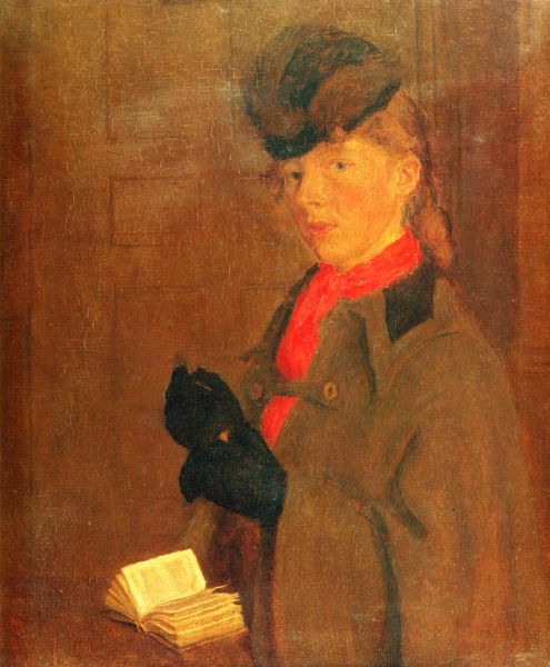 Editor: Here we have Carl Larsson's "Self-Recognition," painted in 1906. It's an oil painting and, honestly, the first thing that strikes me is the slightly unsettling contrast between Larsson's self-portrait and the puppet he's holding. What do you see in this piece, especially concerning its materiality? Curator: For me, this work is fascinating because it throws into sharp relief the constructed nature of artistic identity, something too often presented as inherently profound. Look at the materials – oil paint, canvas, even the garments depicted. These are all commodities, objects of production that intersect with Larsson's social position. Editor: That’s interesting. So you're focusing on the economic and material factors involved? Curator: Precisely. The labor involved in producing these materials, the commerce that circulates them. Even Larsson’s choice of clothing is significant – that artist’s smock isn’t just a practical garment; it's a signifier of a particular kind of creative work. How does that reading shift when juxtaposed against this curious puppet figure, a decidedly low-brow figure and children’s entertainment? Editor: So, the "high art" of the self-portrait clashing with the “low art” of a child’s toy challenges those boundaries, and questions their worth? Curator: Exactly. This challenges what we consider high and low brow by implicating children's labor in contrast to that of Larsson himself as a supposedly great artist, as he quite literally holds the tool, material, or process of creative labour right in his hands. This forces the viewer to address this complex relationship and thus destabilizes a romantic interpretation of authorship and authenticity. Are we more impressed by a commodity? Editor: That's a perspective I hadn’t considered. I was initially caught up in the strangeness of the image, but now I see how the painting’s materials and context play a huge part in its meaning. It really gets me thinking about how we assign value to different kinds of making. Curator: Indeed, it prompts us to consider how class, labor, and social structures shape artistic creation. It's a good reminder that even the most personal expressions are shaped by the material conditions in which they are made.