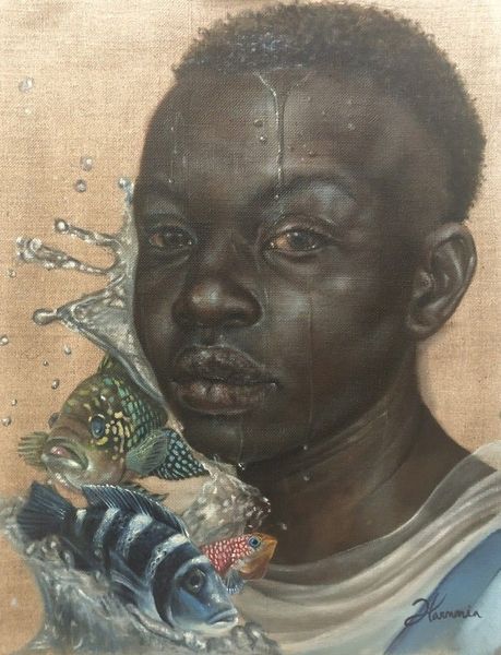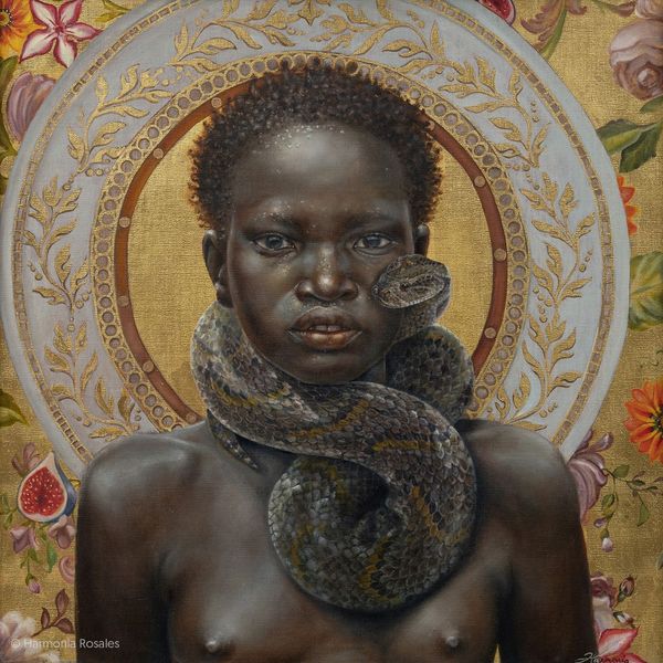 Harmonia Rosales painted "Portrait of Oshun" with oil on canvas, conjuring a divine presence with striking clarity. I love the way Rosales builds up the figure with thin layers of paint, allowing the texture of the canvas to peek through, giving the skin a luminous quality. Those splatters of gold on Oshun’s face – they feel less like blemishes and more like constellations, mapping a personal cosmology. The way the sunflowers and peacock feathers frame her face, it's like she’s emerging from a dream, or maybe inviting us into one. You know, looking at this, I’m reminded of Frida Kahlo’s self-portraits, where the personal and the symbolic blend, both artists creating their own visual language to explore identity. It’s a gentle reminder that art is not about answers, but about the questions we dare to ask.