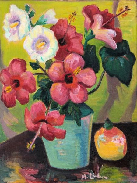 Curator: Tadeusz Makowski's "Zinnias and Asters in a Glass Jar," painted around 1920, greets us with a bouquet of vibrancy and warmth. Editor: My initial impression is one of domestic intimacy. The thick brushstrokes and glowing colors, especially the oranges and reds, really exude a certain coziness, almost as if plucked straight from a kitchen windowsill. Curator: Indeed, Makowski's engagement with Post-Impressionism, and specifically his use of impasto oil paint, elevates a rather common domestic subject, opening pathways to consider the artwork's place in debates about labor, production, and the materials of everyday life. The textures are not merely decorative, but indicative of the labor and materials inherent to its creation. Editor: Yes, the materiality jumps out! Look at how the artist built up the surface. Those impasto strokes almost feel like a sculptural rendering of light reflecting off each petal. We might ask, how do those bold marks, each deliberate application of pigment, communicate meaning? Is it simply representation or something more? Curator: I would argue it is a deliberate blurring of the line between fine art and craft, by imbuing the painting with clear reminders of the painter’s presence. Beyond a simple representation, the painting explores societal issues. For example, if the flowers can be viewed as symbolising transient beauty, we must then ask about how women’s value was considered within transient and reproductive terms. How does this image of beauty reinforce gender roles of the time? Editor: Fascinating to bring that to the forefront, while keeping sight of his physical struggle with oil paints. You know, by explicitly revealing process, Makowski’s method subtly asks, "What work makes this possible?". Who gathered the paints? What support structures, both economic and societal, did the painter require? Curator: Absolutely, engaging these flowers with socio-economic concerns demands that we remember and question hierarchies and privilege inherent in art history, the same hierarchy the very technique challenges and brings forth. Editor: A lively discussion, especially considering what may be seen as a mere “still life” at first glance. It definitely encourages looking beneath the surface. Curator: Agreed. Makowski gives us beauty with layers to unpack. These "Zinnias and Asters," ultimately, provoke a multifaceted exploration of art's engagement with materials, labor, and our cultural contexts.