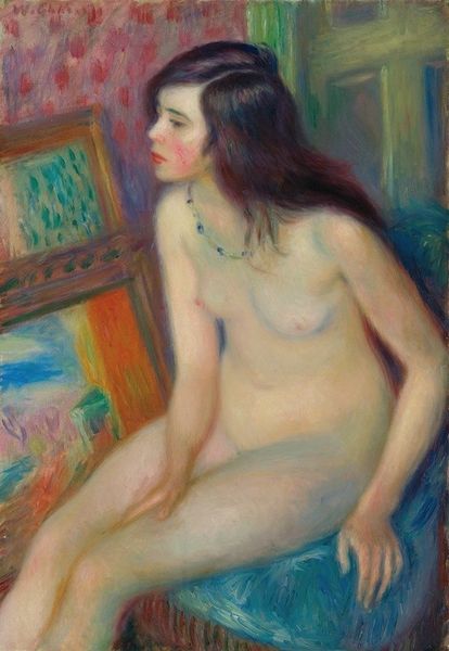 Samuel Mutzner made this painting, "Intimitate", with oil paint in a style which looks like he’s trying to get the whole thing down at once, like he’s in a hurry, or just really excited about what he’s doing. The colours are gorgeous, all muted pinks and yellows and browns, like a faded photograph. Look at the way he’s built up the figure with these little dabs of colour. It’s like he’s not trying to be precise, but more to capture the feeling of light on skin. And the background is just a riot of brushstrokes, swirling around the figure, almost threatening to swallow her up. I’m reminded of Vuillard, who also had this way of making paintings that feel both intimate and a little bit chaotic. For me, this piece embraces ambiguity, that feeling of something just out of reach, which is so much more interesting than anything too literal.