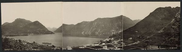 Curator: Let’s turn our attention to this arresting view, “Gezicht op Fort William, Schotland, aan Loch Linnhe en de voet van de Ben Nevis,” believed to be taken by James Valentine sometime between 1851 and 1880. Editor: It certainly possesses a tranquil, almost melancholic character. The tonal range is quite limited, emphasizing layers of soft grey against the sky's pale wash. The heavy horizon line pushes a mood of introspective stillness. Curator: As a photograph made during the pictorialism movement, we can certainly read these choices of limited range and subject matter to represent particular artistic trends. The choice to feature Fort William set against the dramatic backdrop of Ben Nevis served, at that time, a growing interest in romanticized views of Scotland, fueled by expanding tourism and burgeoning national pride. Editor: Right, the composition reinforces this; note the placement of the town itself: a slim band sandwiched between the immensity of the landscape. The artist intentionally diminished the mark of mankind against this sublime natural scene. The water's reflective capacity enhances the dreamlike atmosphere. Curator: And what this image does well in contributing to the pictorialist movement is highlighting and utilizing the capacities of photography to replicate painting. The almost total focus on the subject matter helps demonstrate how powerful images are, especially when understood in relation to artistic intention. How does the social context alter or affirm your view? Editor: The period in which Valentine produced this image saw substantial transformations in photographic techniques. It's also hard to overlook the colonial associations with landscape imagery from this period. Though, by picturing it so serenely, are the difficult political realities being softened for viewers and patrons? Curator: A worthy point. I appreciate how your insight integrates the image with broader historical and political contexts. Editor: And you, with the careful focus on the image's formal achievements.