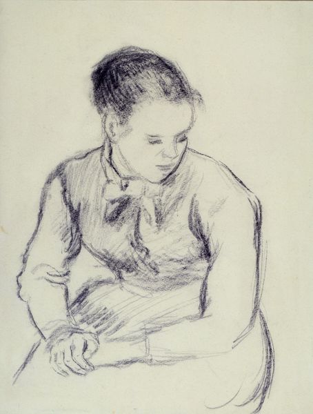 Editor: This is Henk Henriët's "Zittende vrouw in een kamer," made in 1934. It looks like it's done in pencil. The woman in the drawing seems so still, almost resigned. What do you see in this piece? Curator: I see a reflection of the societal constraints placed upon women during that period. The Realist style strips away any idealization, presenting us with a very human, unglamorous depiction. Notice the Ashcan School influence – a focus on everyday life, especially those often overlooked or marginalized. Consider the economic context of 1934; what emotions do you think the artist may be highlighting through this work? Editor: You mean things like poverty, limited opportunities, especially for women? Is that why she looks so… contained? Curator: Exactly! Her posture, her setting, the lack of adornment – it all speaks to a kind of quiet resistance within confinement. What about the composition strikes you most? Does it reinforce that feeling? Editor: I think it’s how she’s framed by the room. Everything feels a bit cramped. Curator: Yes, that constriction is deliberate. Henriët might be commenting on the domestic sphere as a space of both refuge and restriction for women. It provokes the viewer to question the roles assigned to women and the silent battles they fought within those confines. It also prompts questions about class, power, and visibility in representation. Editor: It makes you think about all the unseen struggles someone might be facing. Curator: Absolutely. This drawing isn't just a portrait; it's a quiet, powerful statement. It's made me reflect on the importance of acknowledging those everyday battles against systemic inequalities. Editor: I agree, looking at it from a social context makes you look at it in a whole new way.