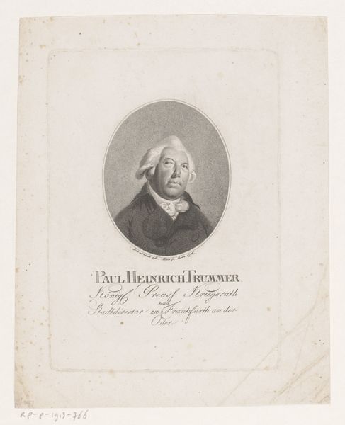 Heinrich Schwenterley created this print of Johann Beckmann, a German economist, sometime around 1791. The piece reflects the late Enlightenment interest in civic virtue and the importance of public service. Beckmann, depicted in profile, is framed by an oval, a common motif for portraiture at this time that lends an air of classical dignity. His powdered wig and formal attire signal his status, while the print medium suggests wider distribution and recognition. The inscription below Beckmann’s name further commemorates his legacy. Prints like these served as a form of public memorial and played a role in shaping collective memory. To understand the significance of this portrait, one might delve into the archives of academic institutions and learned societies of the time. Art history, in this case, becomes a means of exploring broader social and intellectual currents.