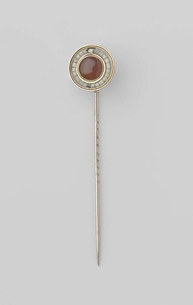 Curator: This is a decorative watch created by Charles Oudin, dating to somewhere between 1820 and 1840. Notice the combination of silver and other metals. Editor: The delicacy of it strikes me first – it almost looks too precious to serve its utilitarian purpose. It presents an image of carefully considered value, not mere practicality. Curator: Exactly. What’s fascinating is the material contradiction; something intended for measuring and governing time so elaborate, almost resisting its function. Who crafted each part? What were their lives like, making this miniature time-telling machine? Editor: The colour palette feels symbolic; the gold tones remind us of prosperity and status. The hints of blue perhaps allude to constancy, the dependability with which the watch would keep time? The wearer of such an object could not just keep the time, but communicate a narrative, to show the world that they control it. Curator: The chain extending upwards looks almost like a plumb line, or maybe a rosary. Given the period, such watches were largely custom made – objects fashioned by workshops that mirrored industrialising factories but with individual flair. Each section of the chain seems distinct and handmade. Editor: And there's a sort of three-pronged element sprouting at the top. Do they offer alternate tools for adjusting the watch face? It's an image of potential: three roads not taken or three paths towards mastery of time itself. It might reference specific tools used, turning mere measurement into ritual. Curator: I see your point. For me, each alteration of the links along the chain communicates a choice. These alterations make us think of time's abstract passage being divided into manageable increments and turned into beautiful design by the creator. Editor: And, ultimately, made wearable, so that temporal awareness might turn from a concept into a way of life. The wearer doesn't just possess a timepiece; they embody the temporal narrative itself. Curator: A final thought—the maker's own "time" becomes part of the object itself. It seems like a constant collaboration across time to produce such a singular piece. Editor: And that act, in turn, leaves us to think about what such symbols meant for those long ago—both maker and owner and ultimately us now—so long after the last tick and tock.