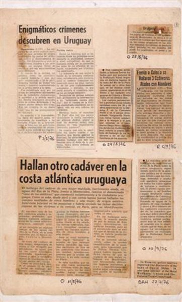Editor: Here we have an untitled piece by León Ferrari. It looks like a collage of newspaper clippings. The headlines are stark and unsettling. What do you see in this piece? Curator: It screams of a painful history, doesn't it? Ferrari often used text and image together, confronting political realities head-on. The clippings become fragments of a broken narrative. Look at the urgency in the font, the density of the text. What does it evoke in you? Editor: A sense of unease, a feeling that something terrible has happened and is being presented matter-of-factly. Curator: Exactly. And that disjunction, that contrast between the horrific content and the mundane presentation, is precisely where Ferrari's critique lies. Art can be a powerful form of protest, wouldn't you agree?