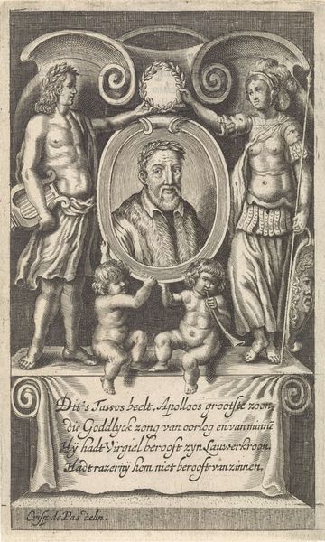 Philip Fruytiers created this print, depicting Cornelis Jansenius, Bishop of Ypres. It was made using the intaglio process, where an image is incised into a metal plate, inking the recesses and using a press to transfer the image onto paper. The process itself is labor intensive; each line is a deliberate act, demanding precision and control. The texture of the print arises directly from the artist's hand, guiding the tool across the copperplate. The dense network of lines creates a rich tonal range, from the deep blacks of Jansenius's robes to the delicate shading of his face. Notice how the engraved lines capture the bishop's solemn expression, as well as the ornate details of the surrounding allegorical figures. This meticulous method reflects a pre-industrial approach, where craftsmanship and skill were valued. Each print becomes a testament to the labor involved, a physical record of the artist's dedication. This contrasts sharply with modern digital printing, inviting us to contemplate the changing value of skilled work in an age of mass production.