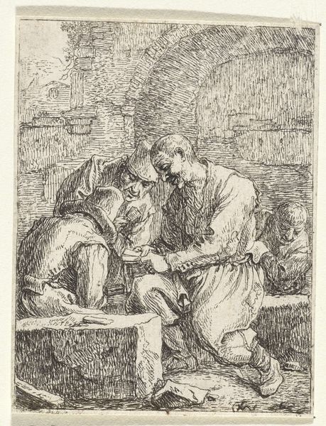 Bernard Picart created this etching, "Pero zoogt de geketende Cimon in de gevangenis", sometime in the late 17th or early 18th century. It illustrates a story of familial devotion overcoming the apparent laws of nature. The scene depicts Pero, daughter of the imprisoned Cimon, nursing her father to prevent him from starving to death. This popular story, known as Roman Charity, has been told through the ages. It was especially popular during the Baroque era. The image challenges social norms by placing the natural bond between parent and child above legal authority. Picart was a French engraver who spent much of his career in Amsterdam. He was thus working within the political structures of the Dutch Republic. As a commercial artist, he would have been aware of how best to appeal to a broad audience and what messages would find the most traction. To understand images like these, we look to the social and institutional histories of art production. Only then can we can gain insight into the messages they were trying to convey.
