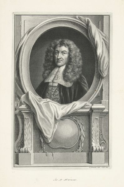 This engraving portrays Charles Spencer, the 3rd Earl of Sunderland, and was created by Jacob Houbraken, an engraver active in the 18th century. The portrait is framed by an ornate, oval border, draped with fabric, and a cartouche below. Such depictions of nobility were ubiquitous, serving to communicate power and lineage. Consider the fabric: draped around the frame it evokes a sense of theatricality. From antiquity through the Renaissance, drapery has been used to indicate status and importance. Think of the Roman emperors, often depicted in togas, or the Virgin Mary, frequently shown with flowing robes. The fabric both conceals and reveals, creating a dynamic interplay between the subject and the viewer. These recurring motifs, repeated through history, speak to our collective unconscious. Images such as this, trigger deep-seated emotional and psychological responses that continue to resonate across centuries. It is a reminder of how symbols evolve and adapt, resurfacing in new forms while still carrying echoes of their past.