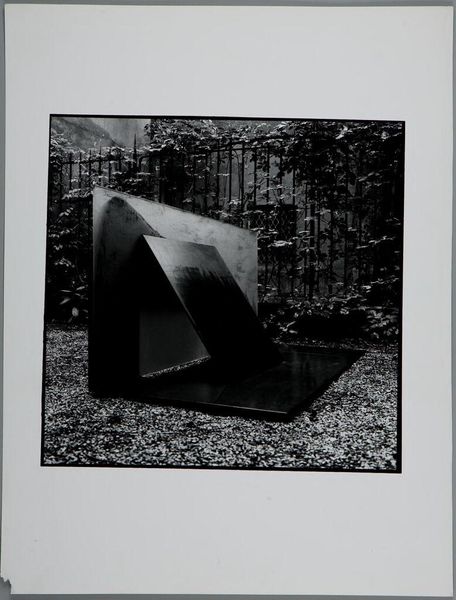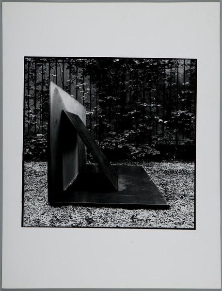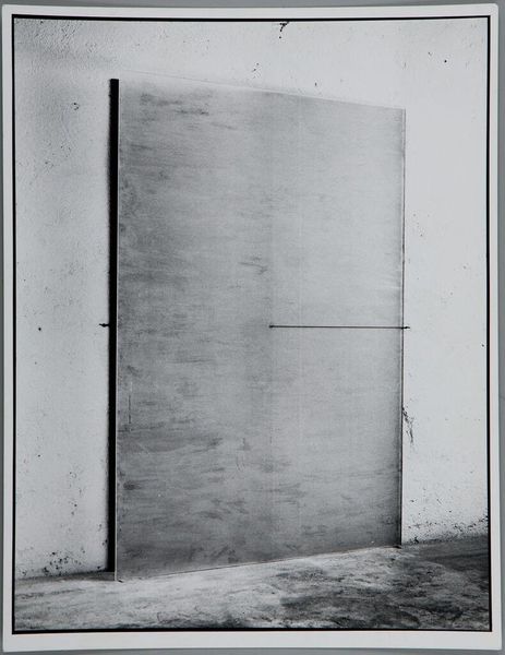 Curator: At first glance, this image evokes a sense of quiet desolation. It's stark, almost haunting in its simplicity. Editor: Indeed. This is Enzo Nocera's "Normal Corner (New)," photographed in 1973. What we see here is an angled corner piece within Wilmarth's studio, captured in black and white. The use of the corner motif has historical connotations to the symbol for where the accused would kneel in confession. Curator: The bare corner piece becomes almost a mirror—reflecting the viewer's own interior space, confronting us with feelings of alienation and introspection. In this studio context, it perhaps speaks to the artist's solitude. Editor: It's intriguing how Nocera reframes such a mundane architectural element, a corner, elevating it to a site for contemplation. The photograph highlights spatial politics, dictating a prescribed position, a physical and metaphorical containment within the studio's architecture. Curator: I appreciate how the artist uses simple forms to trigger such complex associations. Editor: It makes me consider how spaces shape our identities, and how the artist's gaze can reveal these unseen forces.