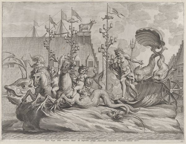 Ambroise Dubois rendered "Helena's Embarkment" in brown wash on paper. It's a traditional art material, but its application here is quite telling. Wash, a diluted ink or watercolor, allowed Dubois to create tonal depth and volume with ease, a technique well-suited to preparatory sketches. The sketch captures a pivotal moment from Greek mythology, but seen through a lens of labor. Look at the figures struggling to load the ship with goods and livestock. Dubois uses the wash to emphasize the weight and strain, mirroring the effort required for maritime trade during his time. Dubois was connected to the second School of Fontainebleau, known for its Mannerist style. While rooted in classical themes, the school embraced decorative, often extravagant aesthetics. However, in this scene, Dubois strips away the pomp, focusing on the grit and exertion of those enabling Helena's journey. The amount of work in the production process is evident. Dubois would have been acutely aware of the human effort that goes into enabling stories of high society. By highlighting the labor involved, he bridges the gap between mythology and the realities of labor, politics, and consumption in his own time.