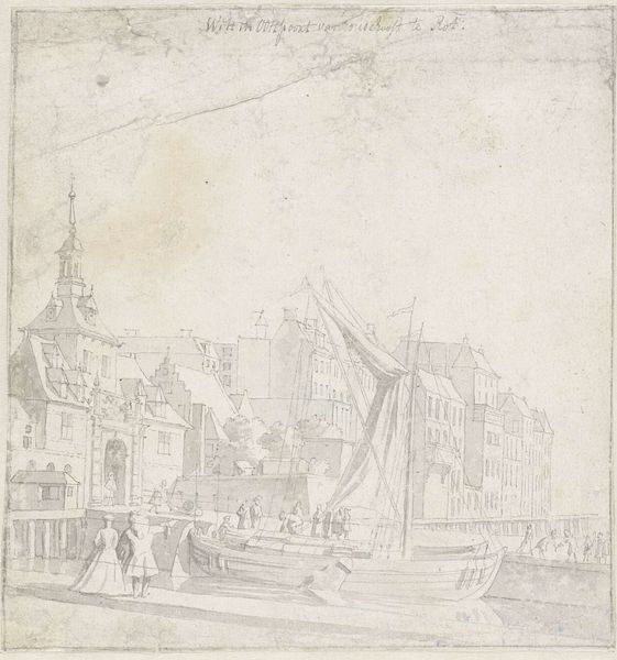 Editor: This is Francesco Guardi’s “A Regatta on the Grand Canal,” created around 1778 using pen and ink. There’s something really dreamlike about the scene, despite the precision of the architecture. What kind of symbolic reading can we give to this drawing? Curator: The Grand Canal itself functions as a potent symbol of Venetian identity. Think of Venice as built *on* water, water as its lifeblood, its link to the world. A regatta, a race, isn’t just sport, it's an expression of Venetian power, skill, and connection to the sea. Editor: That makes sense. The boats become symbols of something bigger than just themselves. Curator: Exactly. And consider the gondolas. They are not simply boats; they're cultural icons, instantly recognizable markers of Venice. The drawing freezes a fleeting moment of intense civic pride and celebration. The baroque style amplifies that sense of drama. Ask yourself, what is a regatta *really* celebrating? Is it simply a boat race, or does it delve deeper? Editor: I guess it's a visual shorthand for Venice's whole maritime history. Seeing it as a drawing also changes how I think about it, more of an impression than a literal record. Curator: Precisely. Guardi captured the *feeling* of the regatta, a visual encapsulation of Venetian spirit, transforming a genre scene into an allegory of sorts. What lingers after the boats have passed? The cultural memory, recorded for posterity. Editor: It's amazing how much symbolic weight can be carried in what looks like a simple sketch. Now I'm wondering what other seemingly straightforward scenes are concealing. Curator: And that’s the beauty of engaging with art. Keep questioning the surface!