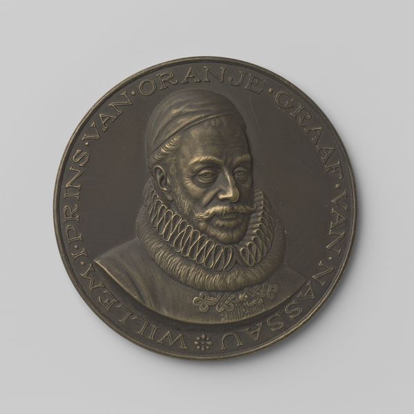 Editor: This is a bronze relief, "Vierhonderdjarige herdenking van de geboorte van Philips Marnix van Sint Aldegonde 1940," by Han Wezelaar. The detail is striking. It feels like a very official commemoration. What catches your eye when you look at this piece? Curator: What I notice first is the material—bronze, a deliberate choice steeped in history and its own production chain. It’s a durable, costly medium often associated with power and commemoration. Consider the process: the labor involved in the mining of the metals, the smelting, the casting… it all contributes to the artwork's meaning. Do you think the choice of bronze elevates this relief beyond a simple commemorative object? Editor: Definitely. It gives it a weight and permanence. I hadn't thought about the labor involved. So, it's not just about remembering Philips Marnix, but also about showcasing power, and the bronze-making process, am I understanding that correctly? Curator: Exactly. And think about 1940, the year it was made. World War II was raging. Resources were scarce. The choice to use bronze, a material often diverted to the war effort, adds another layer of complexity. Was this a deliberate statement about cultural preservation amidst conflict, or something else entirely? Perhaps an exploration of cultural identity or resistance through traditional means and accessible to consumption? Editor: That makes so much sense. Seeing it now, against the backdrop of the war, shifts its meaning. I initially saw a simple commemoration, but it's far more complex. Curator: Indeed. By examining the materiality and production of art, we can challenge conventional interpretations and uncover richer social and historical narratives. Understanding the materials shifts this from simple craftsmanship into commentary of history. Editor: I never would have picked up on the wartime context influencing the bronze casting. Thanks so much! I'll be more aware of materials going forward. Curator: And I will certainly think twice about bronze and material culture! Thank you.