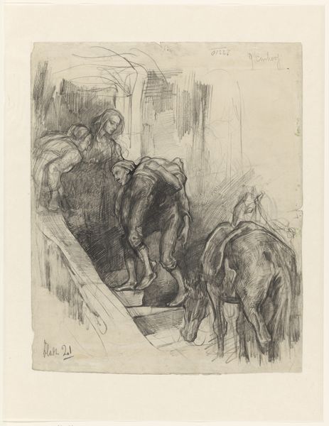 Willem Witsen made this etching of a miller tying up a sack, location unspecified, sometime around the late 19th century. The scene is built from many short, scratchy lines which create a sense of depth and texture. Witsen's mark-making feels like a dance - a little frantic, like trying to capture a scene that's always moving. I’m drawn to the lower right corner, to that weighty sack, bulging and heavily shaded with tight hatched lines. It feels solid and grounded in contrast to the sketchy architectural forms behind the miller. The way the light glances off the top, and fades into the darker, denser marks below, suggests the weight of the thing. It's an intimate portrait of labor and the everyday. You could say that Witsen is working in the tradition of the Dutch masters, like Rembrandt. But Witsen brings a modern sensibility to it, an informal immediacy that feels totally fresh. Art doesn’t have to be ‘finished’ to be meaningful.