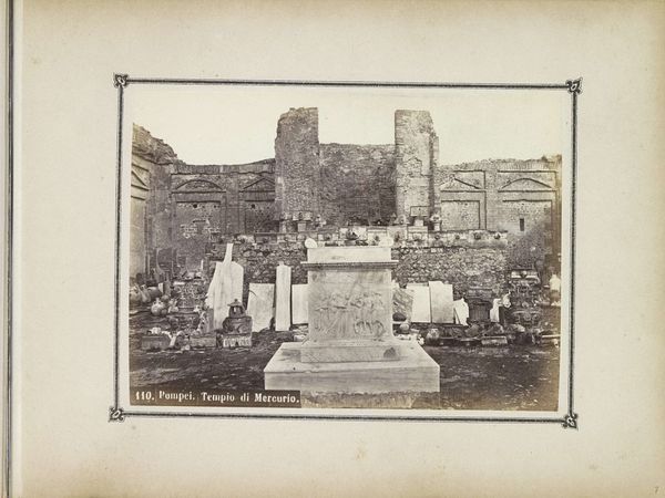 Curator: What a compelling image. This is a photograph by Roberto Rive, taken sometime between 1860 and 1900. It’s entitled “Straat met restanten van graftombes in Pompeï,” or “Street with remains of tombs in Pompeii." Editor: It evokes such a strong sense of melancholy. The gray tones emphasize the somber mood of the ancient tombs lining the worn street. You can almost feel the weight of history. Curator: Absolutely. And Rive captured this with what seems to be a clear objective—documenting the state of Pompeii's ruins, showing us not just grand structures, but this common thoroughfare that once existed, placing these tombs in their material context. Think about the photographic process then: it demanded deliberate execution. Each image painstakingly made, glass plate negatives and darkroom techniques involved… It connects us to the very hands and craft of making visible. Editor: Indeed. This piece raises questions about the act of documenting decay. How did images like this impact the public's perception and consumption of history, or shape preservation efforts? The act of photographing Pompeii contributes to its evolving story, becoming part of the institutional memory surrounding this historical site. Curator: I agree. Think about the consumption too - these photographic records democratized access to the wonders of antiquity for a broader audience who might never visit in person, fostering education but commodifying it. Editor: And where did this "street of tombs" lead? Who lived around it? Did the museum visitor consider the lives in the periphery of it while looking at this work of art? We should think about that as a society as well. Curator: It brings us back to the material conditions of Pompeii - what objects and narratives survived versus which were lost. It's not a glorious painting - it feels more honest and visceral. Editor: It is more accessible because the document itself feels closer to lived lives than other artistic mediums, and so, I believe it makes history palpable. Curator: Exactly. Thinking about Rive's work in this context gives us a deeper understanding not only of Pompeii's material remnants, but how they become powerful cultural commodities. Editor: Yes, this image forces us to contemplate our own roles as inheritors and interpreters of the past.