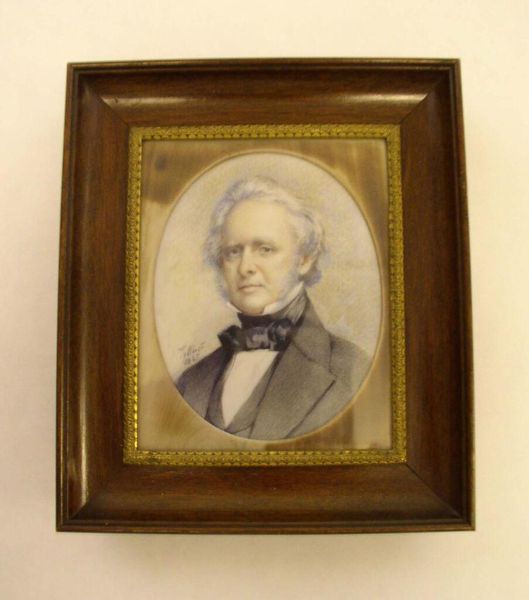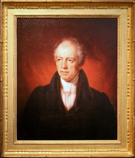 Washington Blanchard painted this portrait of Henry Clay, rendered in delicate strokes of watercolor on ivory. The composition is strikingly simple. Clay's figure, centered and cropped closely, fills almost the entire frame. Blanchard uses a muted palette, dominated by earthy browns and blacks, which creates a somber mood. Yet, this restrained color scheme is disrupted by a flash of red on Clay’s right shoulder, drawing attention to the subject's gaze and subtly animating the image. The play of light and shadow across Clay’s face is carefully modulated, rendering both depth and a sense of interiority. This portrait operates within established codes of representation, yet also suggests a tension between public persona and private self. The artist engages with the semiotics of portraiture, where elements like clothing and posture convey status, yet he also subtly undermines these conventions. The close cropping and soft focus destabilize the traditional distance, inviting a more intimate engagement with the subject. Notice the texture of the ivory support, subtly visible beneath the paint, reminding us of the artwork’s materiality and the artist’s hand. The portrait's visual structure reflects a larger cultural dialogue about identity, representation, and the role of the individual within a society.