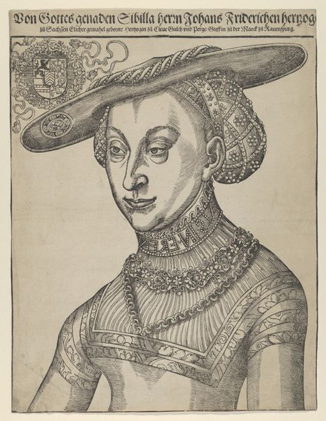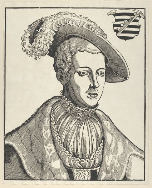 Editor: This is a portrait of Duke Johann Ernst of Saxony. It's an interesting print, anonymous artist, so we don't know exactly when it was made or the materials used. The details of his clothing seem so meticulously crafted. What can you tell me about it? Curator: Considering it's a print, think about the labor involved. This wasn't unique like a painting; it was reproducible. What does that say about the intended audience and the distribution of power and status in representing Duke Johann Ernst? Editor: So, the medium itself speaks to social structures. I guess I hadn't thought about that. The coat of arms, his clothing, all become reproducible commodities. Curator: Precisely. And what materials were used? How accessible would those have been? The answers tell us about consumption and the economics of image-making at the time. Editor: That's a completely different way of looking at it! I'll definitely keep that in mind. Curator: It makes you consider artmaking as a system rather than just an individual expression.