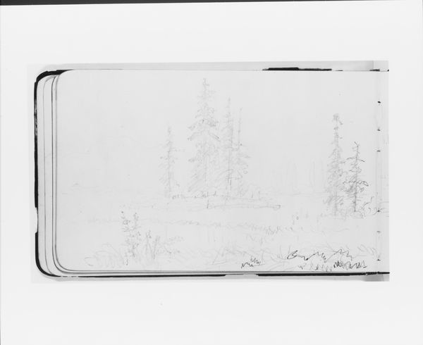 This sketch of a landscape, featuring mountains and foreground trees, comes from a sketchbook by Albert Bierstadt, a key figure in 19th-century American landscape painting. Bierstadt, associated with the Hudson River School, romanticized the American West, creating grand vistas that captured the imagination of a nation undergoing rapid expansion. This sketch provides a glimpse into his artistic process, revealing how Bierstadt distilled the landscape into its essential forms. It's important to remember that Bierstadt's landscapes often omitted the presence and history of Indigenous peoples, contributing to a narrative of untouched wilderness that justified colonial expansion. What might it mean to acknowledge that these landscapes were, in fact, inhabited, cultivated, and deeply meaningful to the communities who called them home? As you look at this sketch, consider how it invites us to reflect on the complex relationship between nature, culture, and power in American history.
