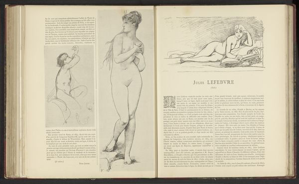 This photogravure reproduces a drawing, possibly by Émile Bin, depicting a female nude figure. Without a date or artist, it becomes an intriguing puzzle piece within the broader history of art institutions. The image, nestled within a book page full of dense French text, speaks to the academic study of art, specifically the nude form. In 19th-century France, the art academy played a vital role in shaping artistic taste and skill. The nude was central to this pedagogical structure, embodying classical ideals and serving as a foundation for artistic training. This photogravure, appearing within a scholarly publication, is likely a tool of art education. The sketch may have been made by a student copying from a live model, as was the custom. To fully understand this artwork, we must look at the social and institutional contexts of 19th-century French art. Scholarly resources like archival documents and academic publications can reveal the complex relationship between art, education, and social norms.