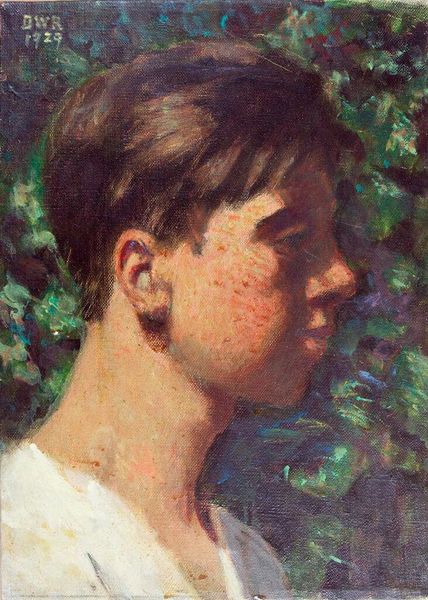 Curator: Here we have Denman Waldo Ross’s, "William Vincent" portrait. Immediately, I'm struck by the contemplative and serene mood, almost meditative. Editor: Ross was deeply involved in the Arts and Crafts movement, and portraits like this offered him a way to explore broader themes of labor, class, and idealized masculinity. Curator: The subject's closed eyes certainly reinforce this idea of inner reflection, perhaps indicative of a quiet resistance to the social expectations of his time. Editor: And yet, as a small-scale portrait, the work also fits comfortably into the tradition of domestic portraiture, reminding us of the public role of art through private commissions. Curator: It's remarkable how much emotion is conveyed through such a seemingly simple composition; the artist pushes us to challenge preconceived ideas. Editor: Indeed, these works offer a unique window into the values that shaped artistic production during that period. I will remember this. Curator: I agree, it's fascinating how art and social commentary coalesce in this work.