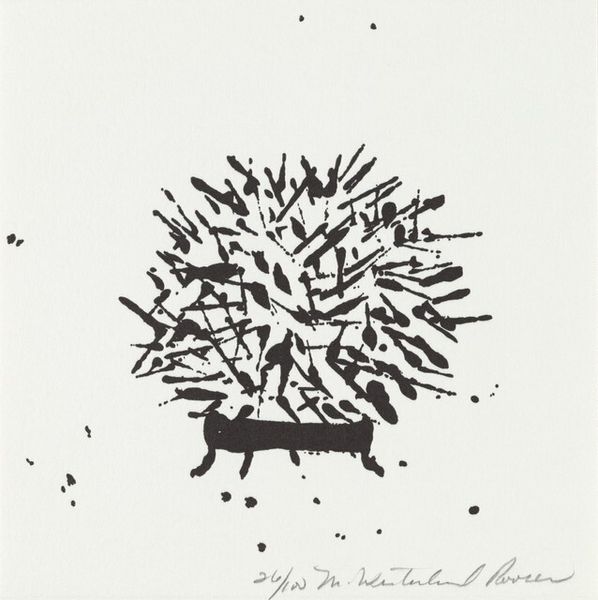 This is Leonard Baskin's "Rhinoceros," an etching on paper. The image itself is quite small, centered on a much larger piece of paper. The technique of etching involves biting lines into a metal plate with acid. The plate is then inked, and the ink wiped away, remaining only in the etched lines. When the plate is pressed against paper, it transfers the image. As you can see here, etching allows for a great deal of detail. Printmaking, including etching, is closely tied to the industrial revolution. It's a means of production that allows images to be reproduced in multiples. This aligns with the rise of capitalism and mass production. Yet the hand-made nature of etching, as opposed to photomechanical printing, gives it a unique position. It sits between the traditions of fine art and the world of industrial reproduction. In this work, Baskin reminds us of the labor and skill involved in the making process itself. The medium is integral to understanding this striking image.