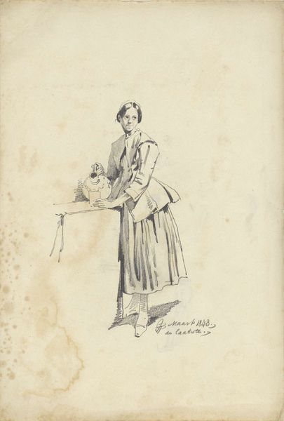 Pieter van Loon rendered this work, 'Zittende Vrouw' or 'Seated Woman,' with pen and ink around 1842, presenting us with a seemingly simple scene. At first glance, it's a portrait, but beneath the surface lies a wealth of cultural history. The way the woman is sitting, perched on a rectangular block, reminds us of ancient depictions of authority. Think of pharaohs on thrones or philosophers on plinths. This motif appears in many forms across time, from religious icons to modern portraits, each time subtly shifting in meaning. Here, the woman's simple dress and the plain setting contrast with the implied authority of her pose, creating an interesting tension. The emotional impact of the piece comes from this contrast. It hints at the dignity and strength inherent in everyday life, echoing through centuries of artistic representation. The image resonates because it taps into a deep, collective memory of how we portray status and self-respect. Ultimately, Van Loon's drawing captures a moment that speaks to broader, timeless themes. It is a quiet testament to the enduring power of symbols and the human condition.