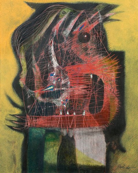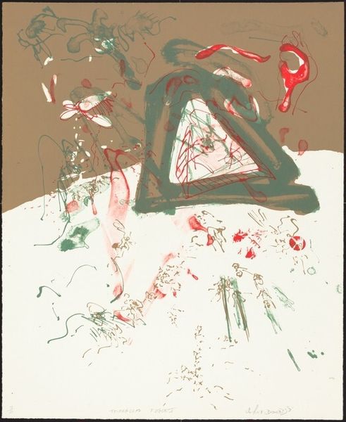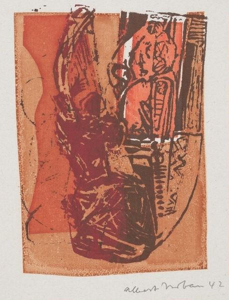 Georges Braque made 'Helios Black and Red' using simple graphic tools, creating a space where color and line are immediate and raw. It’s all about the push and pull between these elements. Look at that bold black rectangle, like a chalkboard, setting the stage for a red sun and a flurry of white lines. These lines? They're like Braque’s doodles, forming figures, maybe horses, maybe mythical beings, all scrambling across the surface. It’s as if he's thinking through drawing, each line a decision, a question. That sun, it’s not just a circle, it bleeds into the black, a kind of messy halo. It reminds me of Picasso's use of mythic imagery, like a shared language of symbols and gestures. Ultimately, Braque isn't giving us answers, he’s showing us his process. Isn’t that what art’s all about anyway?