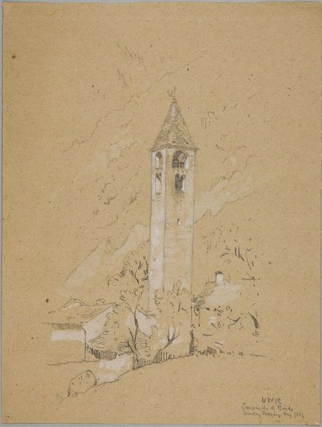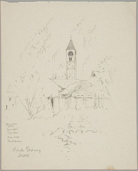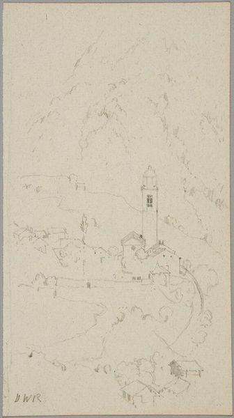 Editor: This is Denman Waldo Ross's "Clock Tower, Grisons, Switzerland." It's a delicate pencil sketch. I’m struck by the subtle way the tower rises amidst the faint suggestion of mountains. What do you make of the artist's choice to leave so much undefined? Curator: It feels like a memory, doesn’t it? Like Ross is inviting us to fill in the blanks, to almost co-create the scene. He gives us the anchor, the clock tower, and then whispers, "Imagine." What feelings does that evoke for you? Editor: A sense of calm and quiet contemplation. It makes me want to visit. Curator: Exactly! The incomplete nature enhances the experience of a personal reflection, doesn't it? Like the best journeys, it's not just about the destination but the space for our own discoveries along the way. Editor: I like that interpretation. I'll never look at an unfinished sketch the same way again.
