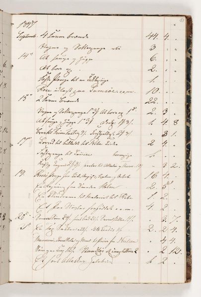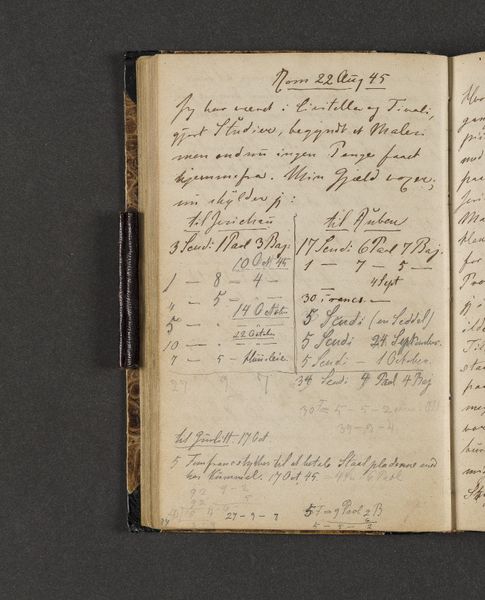 "Møbler og andre Sager" was composed by Johan Thomas Lundbye, sometime in the early 19th century, using pen and ink on paper. At first glance, the page appears as a cascade of handwritten text, neatly organized into lists and calculations. The density of the script creates a visual texture, almost like an abstract pattern. The pale background contrasts with the dark ink, highlighting the deliberate arrangement of the elements on the page. The structure of the writing, its linear progression and careful quantification, invites a semiotic reading. Lundbye catalogues a series of items, possibly inventorying possessions, and meticulously accounting for their monetary value. This juxtaposition of domestic objects with financial notations underscores the interplay between the material world and systems of economic exchange. Lundbye's approach destabilizes simple categorization. Consider how this formal arrangement speaks to the broader cultural context, where personal property and financial records reflected emerging bourgeois values. The artwork presents an intersection of form and function, revealing how everyday objects gain significance through their inscription within larger cultural and economic frameworks.