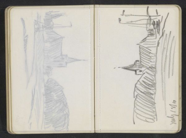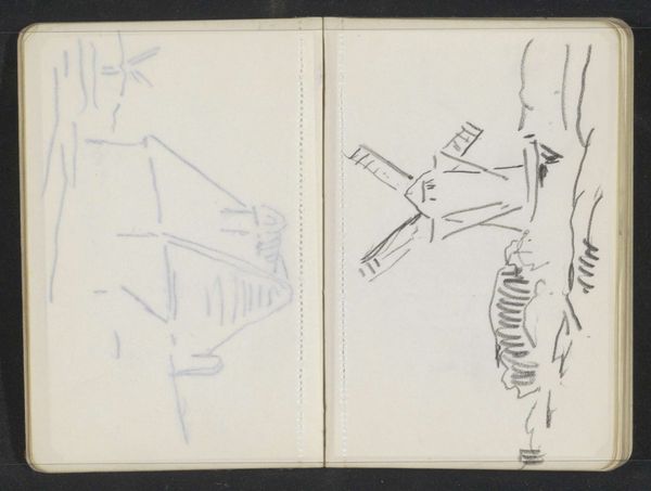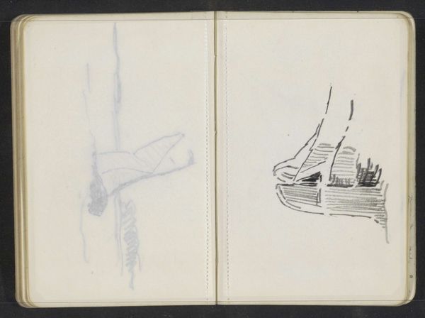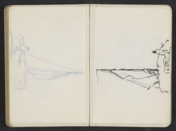 Alexander Shilling made this drawing of a figure on a sailboat in a sketchbook, probably sometime in the late 19th or early 20th century. The quick, light marks suggest the artist was trying to capture a fleeting impression, an image seen from a distance perhaps. It’s interesting how the two sides of the page almost mirror each other, but not quite. On the left, we have what looks like a more detailed rendering of the figure and the boat, while on the right, it’s more abstracted, reduced to a few essential lines. Look at how the shading is made with quick and light marks, and how on the right hand side, the artist is only using line. It's as if the artist is experimenting with different ways of seeing the same subject. This reminds me of the sketches of Constable, who was always trying to capture the ever-changing effects of light and atmosphere. Ultimately, art is about seeing and interpreting the world around us, and this little drawing invites us to do just that.