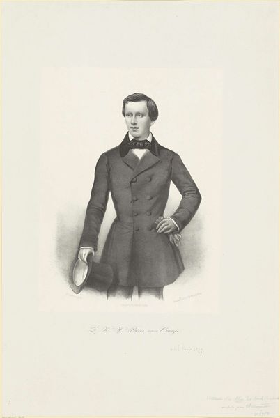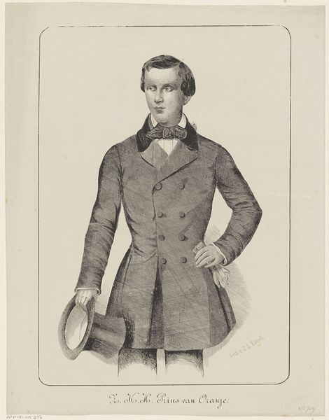 André Symphorien Barreau Taurel created this portrait of Willem, Prince of the Netherlands, using lithography. The image is structured around a central figure whose gaze meets ours, framed tightly from the chest up. What immediately strikes us is the graphic clarity achieved through contrasting tones. The figure emerges from a soft background, the details meticulously rendered using a network of fine lines. The artist’s manipulation of light and shadow not only models the form but also conveys a certain depth of character. Taurel invites us to consider how representation in portraiture is constructed. This work functions as both a likeness and an interpretation, opening a field for continued dialogue.