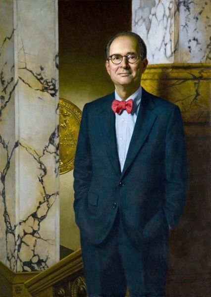 This is a portrait of The Honorable Armond Budish, painted by Daniel Greene, and it commemorates Budish's time as Speaker of the House in the Ohio State House. Such portraits serve a clear institutional function. They offer a visual means of celebrating and legitimizing the authority of political figures. Painted in a naturalistic style, the portrait leans heavily on established conventions. The formal attire, the somber expression, and the careful attention to detail signal the importance of the subject. This echoes the tradition of official portraiture, reinforcing the dignity of the office. Understanding the social and institutional role of art like this requires us to look beyond its surface. We might consider the history of portraiture in political settings, the symbolism of particular poses and clothing, and the ways in which these images shape public perception. This is where historical research becomes essential in interpreting the full meaning of the work.