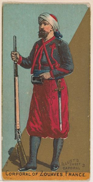This small chromolithograph was made by the Kinney Brothers Tobacco Company as a promotional item for Sweet Caporal Cigarettes. The image depicts a French knight from the late 12th century. Consider the social context of this image: it was made at a time when there was growing interest in Medieval Europe, fuelled by Romanticism and nascent forms of nationalism. These inexpensive cards were collected by ordinary people and reflect a fascination with the history of warfare. The visual codes include the knight’s armor, weaponry, and heraldic symbols. The artist aimed to convey the image of a noble warrior. Institutional histories played a role here, too. Museums and art schools shaped the public's understanding of history through exhibitions and academic studies. Such sources can help us better understand the meaning of art as something that is contingent on social and institutional context.
