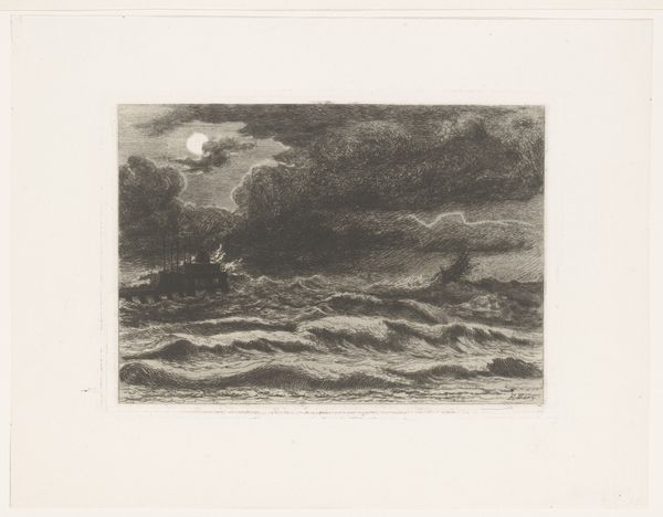 Léon Jean Baptiste Sabatier created this print of François-René de Chateaubriand's grave. The dramatic seascape, with a tomb atop a windswept island, speaks to the Romantic era's fascination with mortality. Observe the island itself, a stark and isolated rock against a turbulent sea. Since ancient times, islands have symbolized isolation and sanctuary, a place set apart from the mundane world. Think of Delos, the Greek island where Apollo was born, or the mythical Avalon, a final resting place. The grave, illuminated by a break in the clouds, evokes Christian imagery of divine light breaking through darkness, symbolizing hope and redemption. This motif is a visual echo of the Baroque era's use of light to convey spiritual transcendence. Yet, here, the light also highlights the vulnerability of human achievement against the vastness of nature. This visual language speaks to a deep, subconscious understanding of our place in the cosmos, echoing through centuries of artistic expression. The symbol of an island as a final resting place will likely continue its cyclical progression.