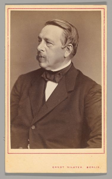 Maurits Verveer created this albumen print, depicting Pierre Mochi, sometime in the 19th century. The photograph's soft, sepia tones create a sense of intimacy, drawing us into the sitter’s world. Consider the composition: Mochi is positioned off-center, his gaze directed slightly to the left, suggesting a world beyond the frame. The stark contrast between the sharpness of his face and the blurred edges of his form creates a sense of depth, subtly detaching him from the background. The uniform tonality of the image flattens out all secondary forms, emphasizing the central figure as the focal point. This flattening also serves to heighten the photograph's abstract qualities, transforming the portrait into a study of light, shadow, and form. By manipulating focus and tonal range, Verveer invites us to consider the photograph not just as a representation of an individual, but as a carefully constructed interplay of visual elements. What does it mean for the viewer to re-evaluate the way portraiture represents identity?